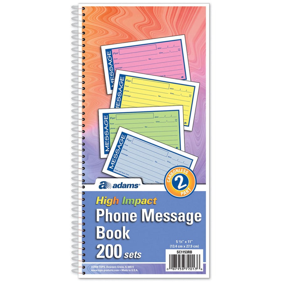 Adams 2-Part Carbonless Phone Message Books - 200 Sheet(s) - Spiral Bound - 2 Part - Carbonless Copy - 5.25" x 11" Form Size - Assorted Sheet(s) - 1 Each