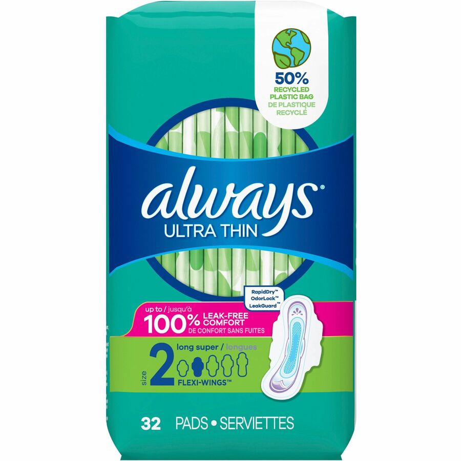 For daytime protection, Always Ultra Thin, Size 2, Long Super Pads with Flexi-Wings offer a flexible design that moves with you plus 100 percent Leak-Free Comfort. The Always 3x Protection System gives you peace of mind day and night. RapidDRY absorbs gushes 90 percent faster than the leading store brand. LeakGUARD core locks in leaks for long-lasting protection. Plus, OdorLOCK helps prevent unwanted odors to help you feel fresh and clean throughout your day. To ensure you have the right fit and avoid the wrong pad size that can lead to leaks, use the Always MY FIT, a tailored sizing system to help you find the best protection based on both your flow and panty size. Sizing chart helps you find your fit for day and night.