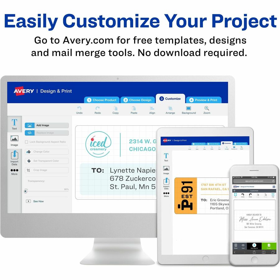 Avery® Easy Peel Inkjet Printer Mailing Labels - 1/2" Width x 1 3/4" Length - Permanent Adhesive - Rectangle - Inkjet - Matte Clear - Matte - Film - Permanent Adhesive, Peel & Stick, Pop Up Edge, Stick & Stay, Chlorine-free, PVC-free - 80 / Sheet -...