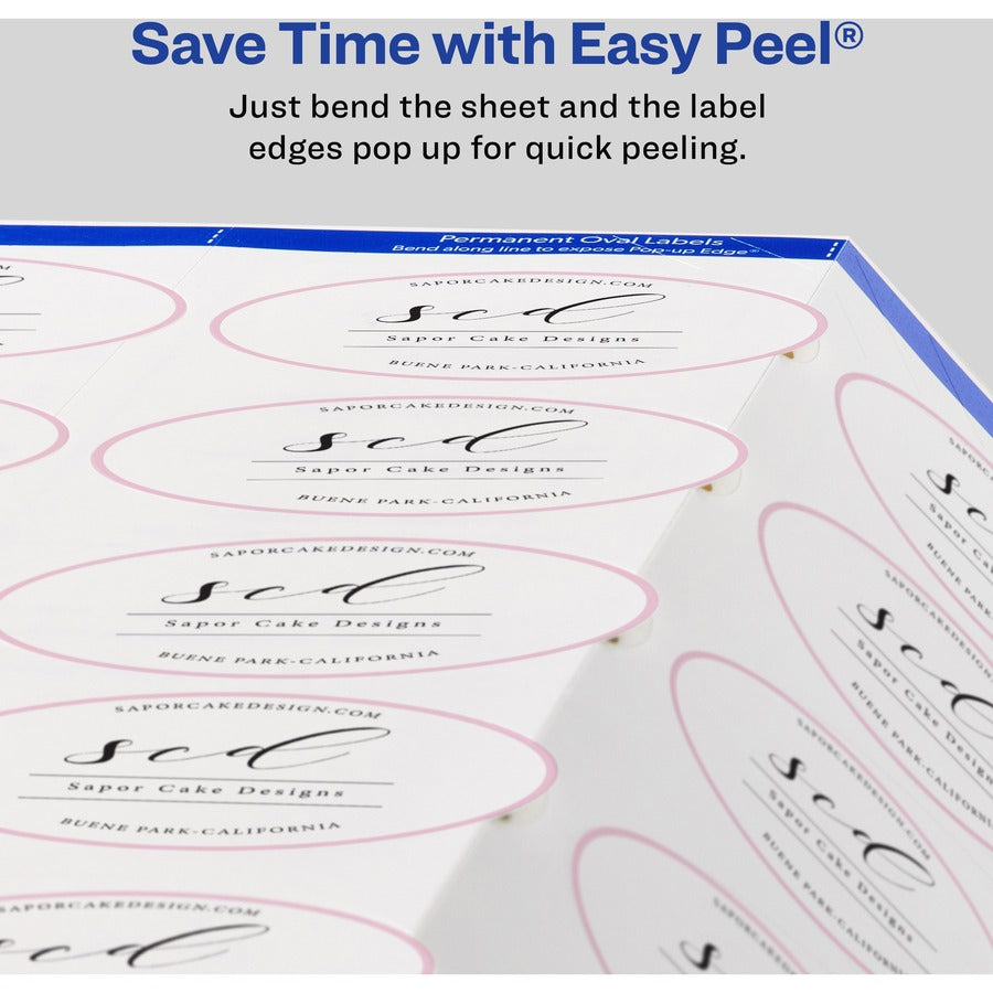 Avery® Easy Peel Oval Labels - Waterproof - 2" Width x 3 21/64" Length - Permanent Adhesive - Oval - Inkjet, Laser - Glossy White - White - Paper - 8 / Sheet - 8 Total Sheets - 80 Total Label(s) - 80 / Pack