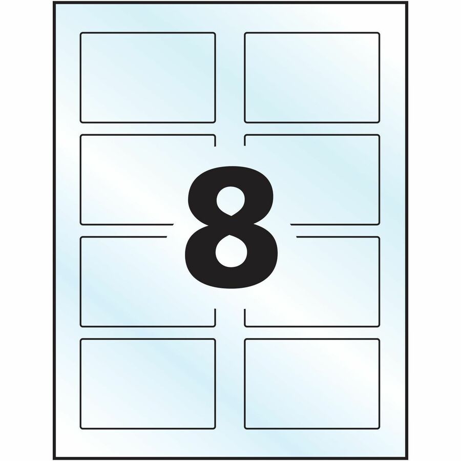 Avery® Glossy Clear Rectangle Labels2" x 3" - 2" Width x 3" Length - Permanent Adhesive - Rectangle - Inkjet, Laser - Glossy Crystal Clear - Crystal Clear - Film - 8 / Sheet - 8 Total Sheets - 80 Total Label(s) - 80 / Pack