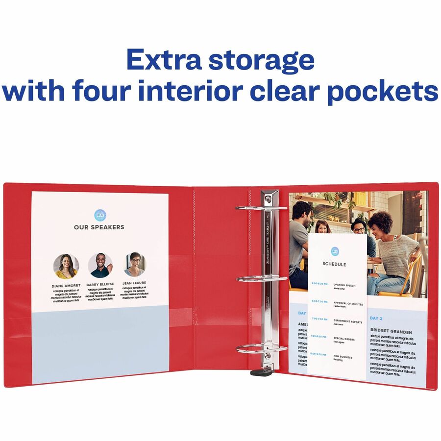 Avery® Heavy-Duty View Binders with One Touch EZD Rings - 4" Binder Capacity - Letter - 8 1/2" x 11" Sheet Size - 780 Sheet Capacity - 780 x 4" Ring(s) - Fastener(s): Ring - Pocket(s): 4, Internal - Polypropylene - Red - Adhesive, Clear Overlay, He...