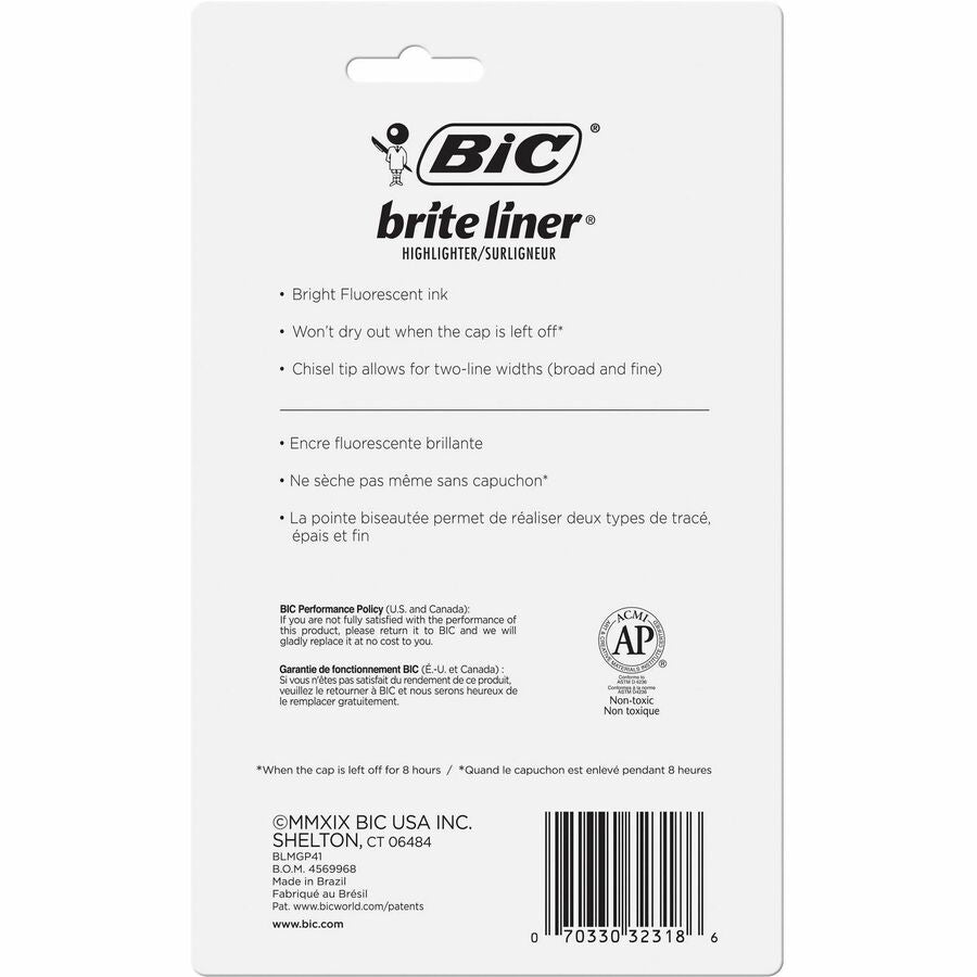 BIC Brite Liner Grip XL Highlighters, Assorted - Chisel Marker Point - Fluorescent Assorted Ink - 4 / Set