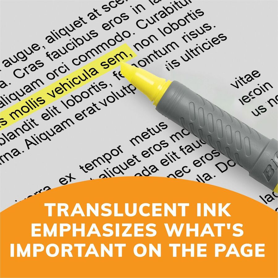 BIC Brite Liner® Grip Highlighter - 1.6 mm Chisel Marker Point - Fluorescent Assorted Ink - 5 / Set
