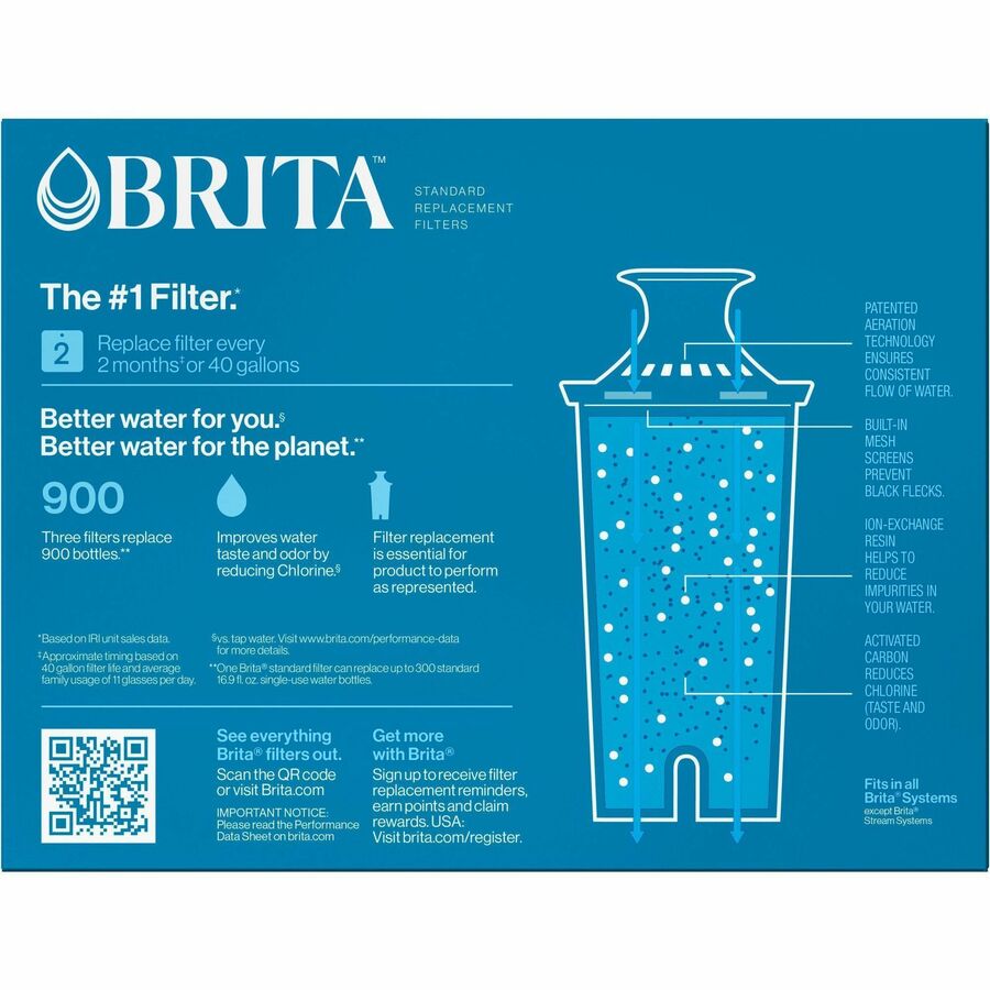 Brita Replacement Water Filter for Pitchers - Dispenser - Pitcher - 40 gal Filter Life (Water Capacity)2 Month Filter Life (Duration) - 3/Pack - 42 / Bundle - Blue, White