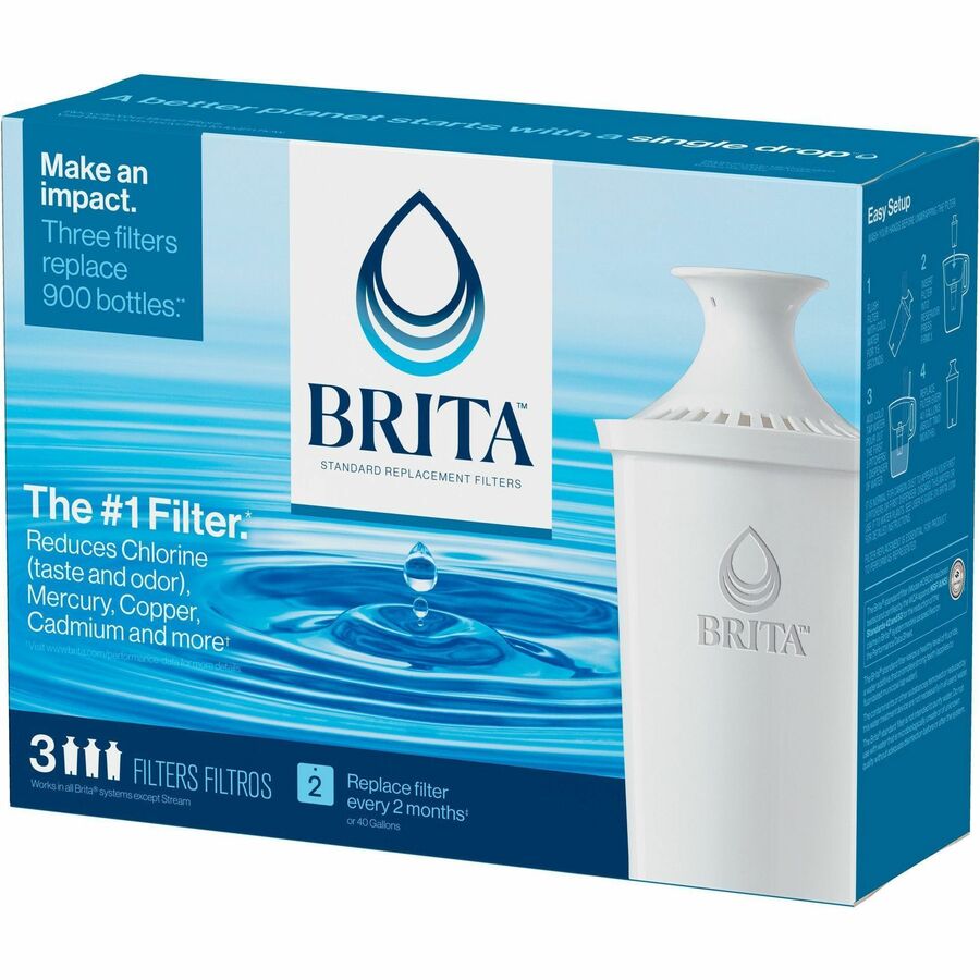 Brita Replacement Water Filter for Pitchers - Dispenser - Pitcher - 40 gal Filter Life (Water Capacity)2 Month Filter Life (Duration) - 3/Pack - 8 / Carton - Blue, White