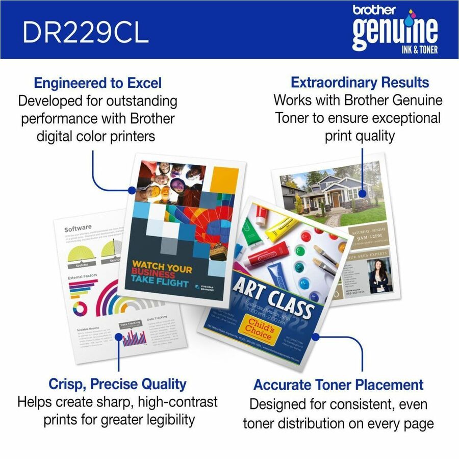Print confidently and optimize the performance of Brother multifunction and all-in-one, digital color printers using this Genuine DR229CL Drum Unit. Developed as part of a complete printing system, this long-lasting drum unit works in tandem with Brother Genuine Toner Cartridges to deliver crisp, professional-looking prints with yields up to 30,000 pages. It is expertly balanced for even flow and consistent toner distribution on every single page so it offers worry-free reliability, precise performance and laser-quality results. Drum is engineered by the printing experts at Brother for superior fit, function and durability. Use with Brother HL-L3220CDW, HL-L3280CDW, HL-L3295CDW, HL-L3300CDW, HL-L8245CDW, MFC-L3720CDW, MFC-L3765CDW, MFC-L3780CDW and MFC-L8395CDW.