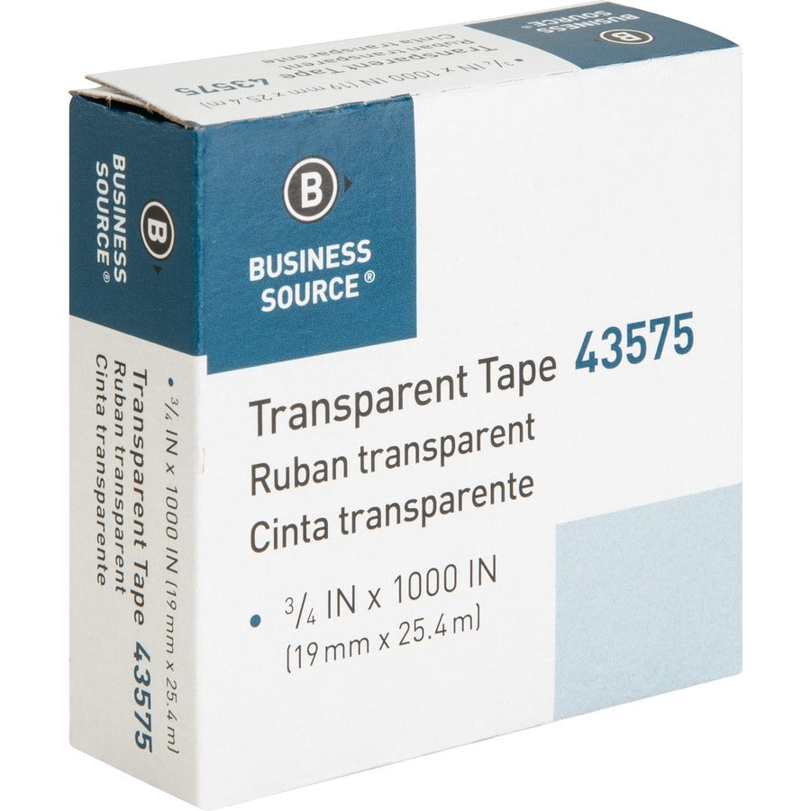 Business Source All-purpose Transparent Glossy Tape - 27.78 yd Length x 0.75" Width - 1" Core - Clear - For Sealing, Mending, Protecting - 12 / Pack