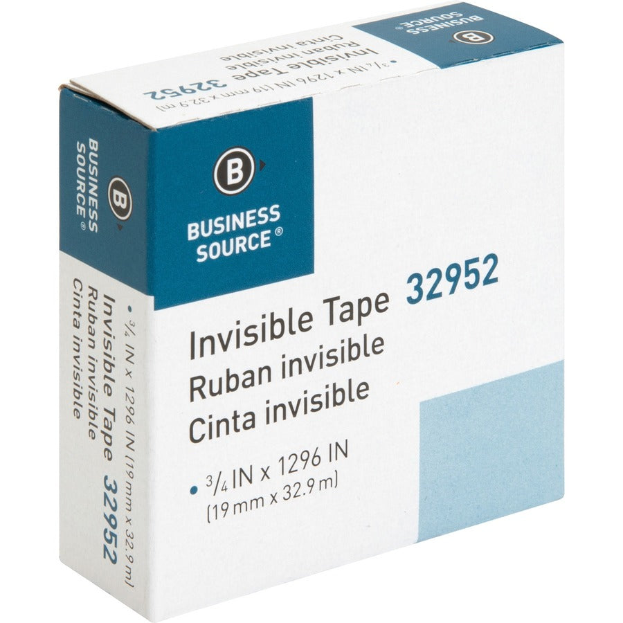 Business Source Invisible Tape Dispenser Refill Roll - 36 yd Length x 0.75" Width - 1" Core - Clear - For Mending, Splicing, Holding - 1 Roll