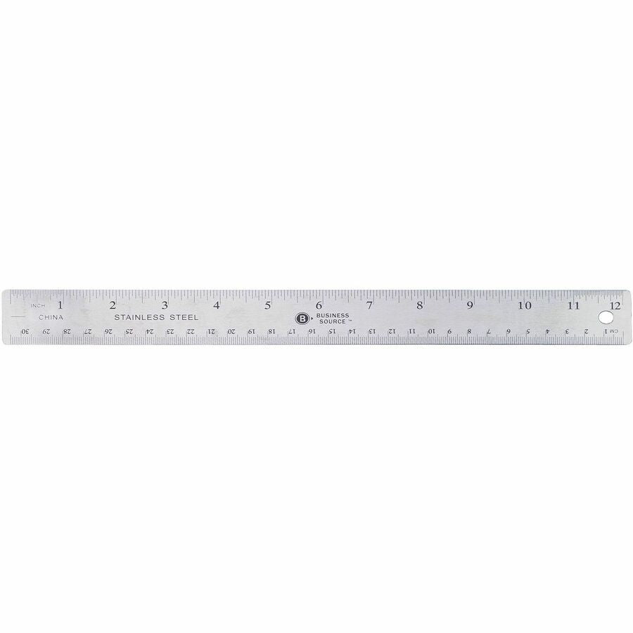 Business Source Nonskid Stainless Steel Ruler - 12" Length - 1/16, 1/32 Graduations - Metric Measuring System - Stainless Steel - Silver - 1 Each