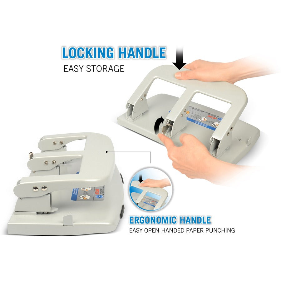 CARL Heavy-duty 3-Hole Punch with Tray - 3 Punch Head(s) - 40 Sheet of 20lb Paper - 9/32" Punch Size - Silver