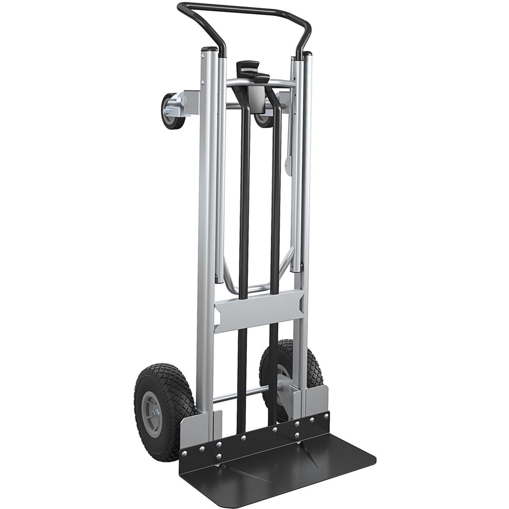 2-in-1 Hybrid Hand Truck does all your heavy lifting with its ergonomic design. Commercial-grade, hybrid construction converts from a four-wheel cart to a two-wheel hand truck with no pins or tools needed. Four-wheel cart holds up to 1,000 lb. while the two-wheel hand truck holds up to 800 lb. Solid, maintenance-free tires provide a sturdy base for easy wheeling without causing flat tires. Looped handle provides maximum control for easy maneuvering with just one hand. Multifunctional design is perfect for home, office and commercial use.