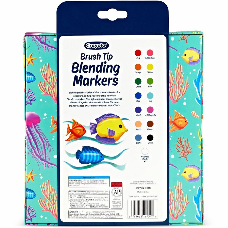 Crayola Blending Markers - Brush Marker Point - Multi Ink - Water Based - 16 / Pack