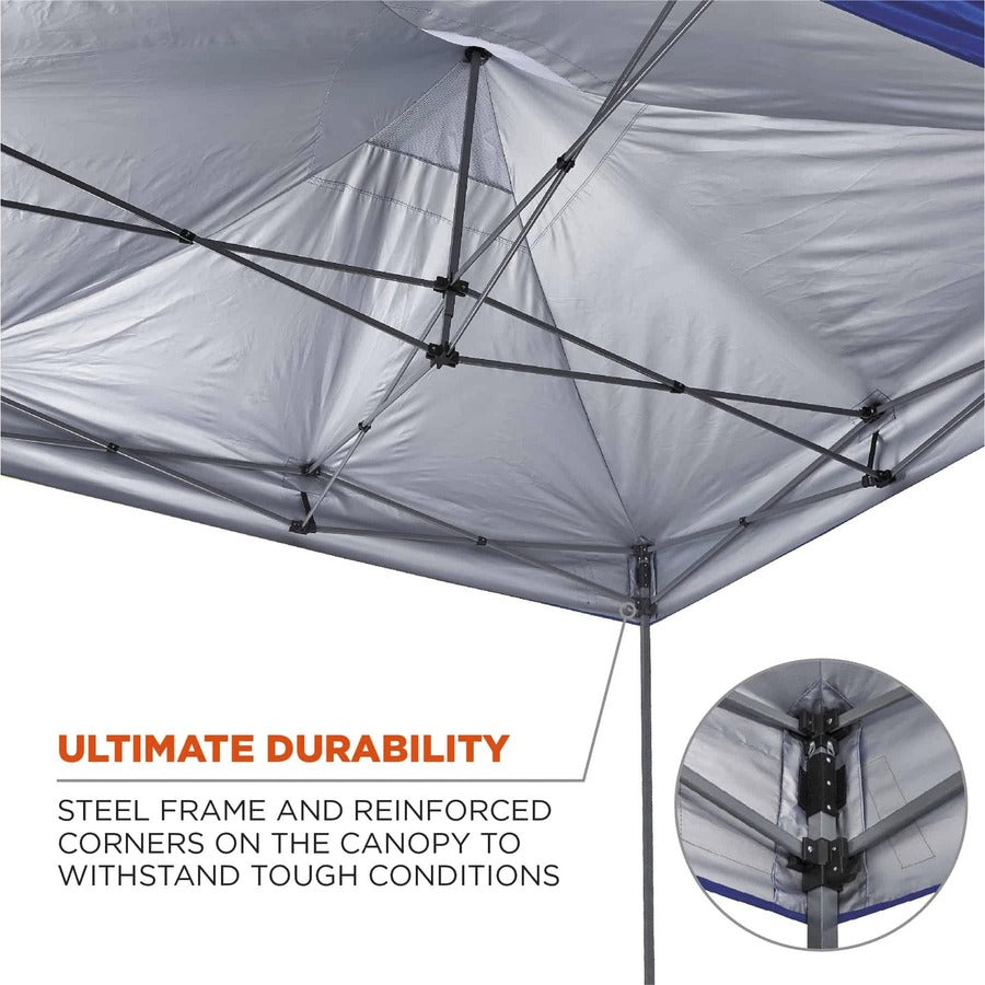 Ergodyne 6000 Heavy-Duty Pop-Up Tent - 10ft x 10ft / 3m x 3m - Canopy StyleBlue - Acrylonitrile Butadiene Styrene (ABS), Plastic, Polyester, Polyurethane - Steel Frame
