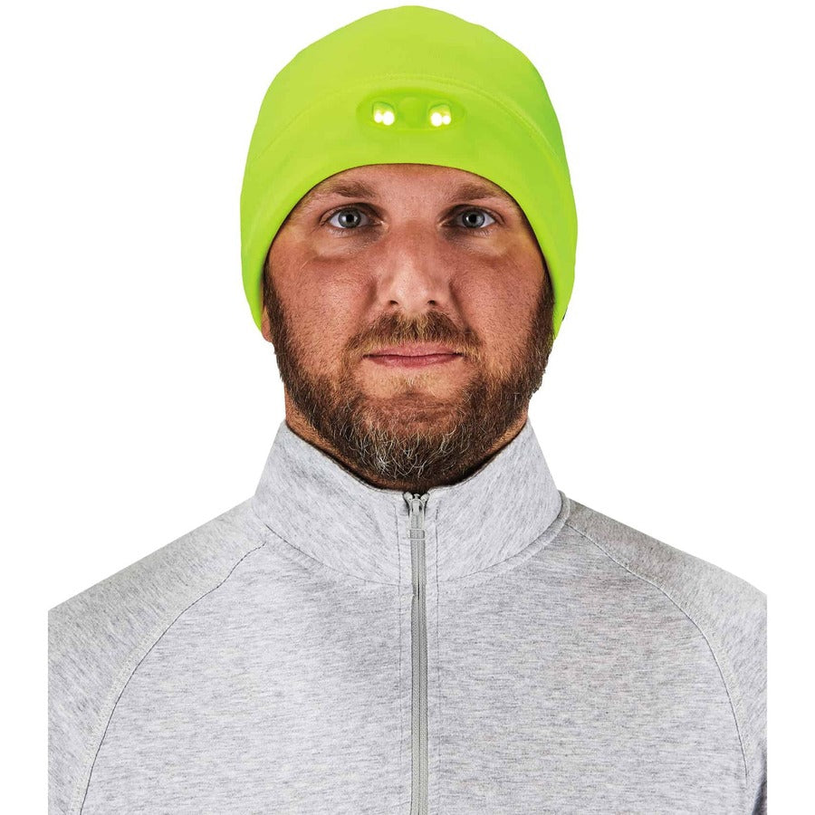Ergodyne 6804 Skull Cap Beanie Hat with LED Lights - Fleece - Lime