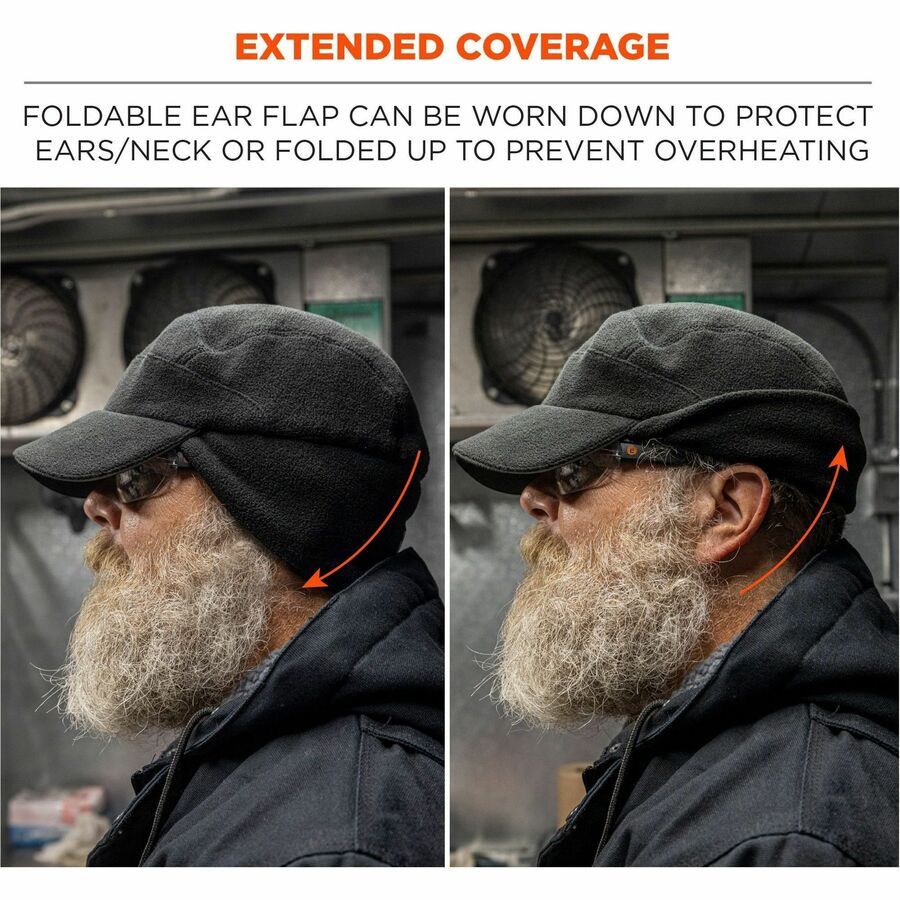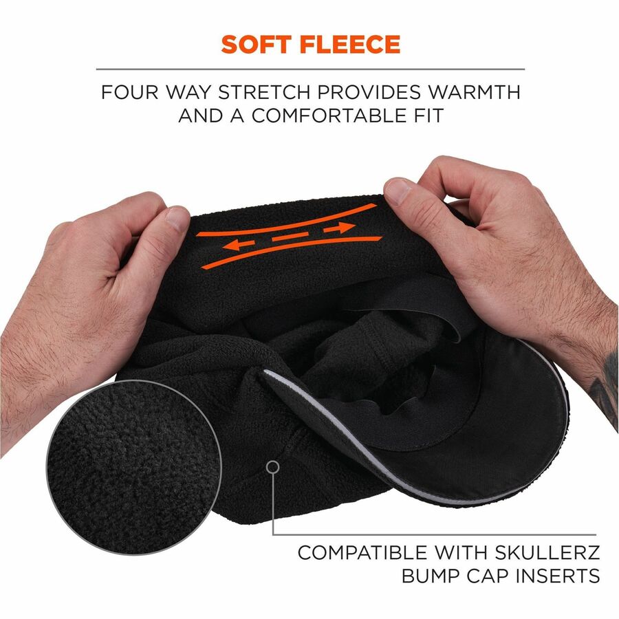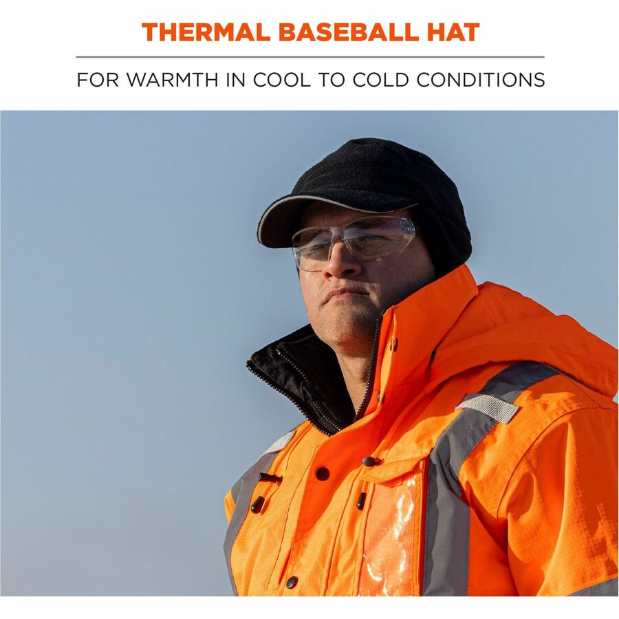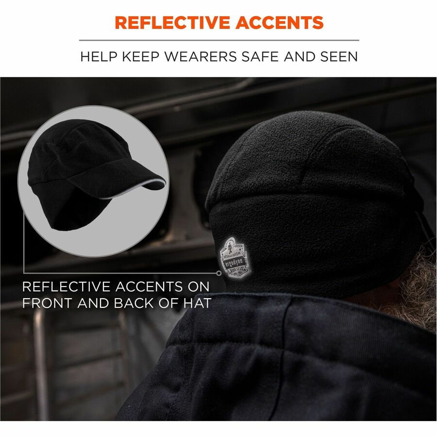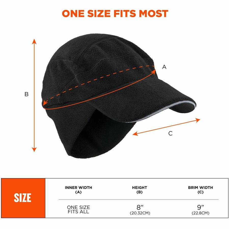 Ergodyne 6807 Winter Baseball Cap with Ear Flaps - Fleece, Elastic - Black