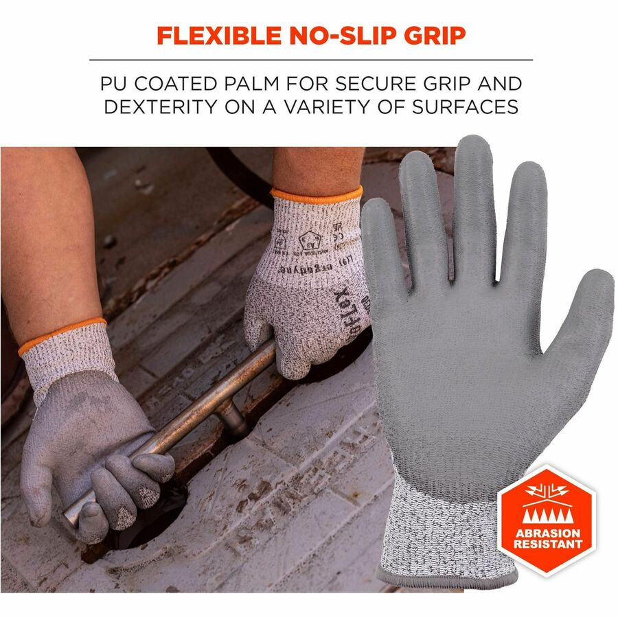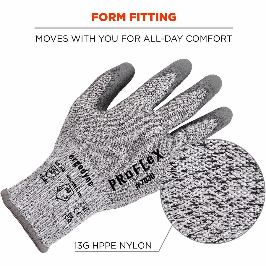 Ergodyne 7030 PU-Coated Cut-Resistant Gloves - Abrasion, Dirt, Debris Protection - Polyurethane Coating - XXL Size - High Performance Polyethylene (HPPE), Nylon Spandex - Gray - Touchscreen Capable - Cut Resistant, Abrasion Resistant, Durable, Flexible...
