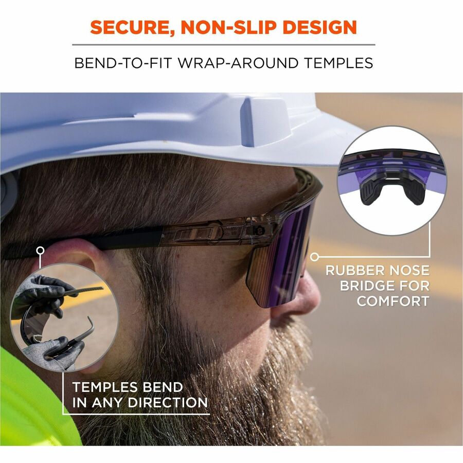 Ergodyne AEGIR Safety Glasses - Recommended for: Eye, Outdoor, Construction, Landscaping, Carpentry, Woodworking, Boating, Hunting, Shooting, Sport, Skiing - UVA, UVB, UVC, Ultraviolet, Sun, Impact Protection - Strap Closure - Polycarbonate, Rubber - B...
