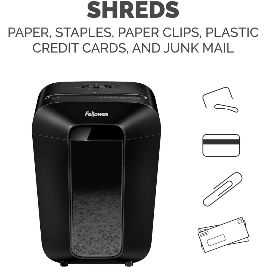 Fellowes Powershred LX70 11 Sheet Cross-Cut Shredder - Cross Cut - 11 Per Pass - for shredding Staples, Paper Clip, Credit Card, Junk Mail - 0.156" x 1.438" Shred Size - P-4 - 5 Minute Run Time - 30 Minute Cool Down Time - 4.80 gal Wastebin Capacity - ...