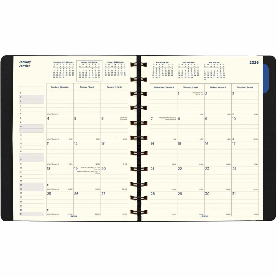 Filofax Monthly Planner, 17 Months, Bilingual, Black (C1811001) - Julian Dates - Monthly, Daily - 17 Month - August 2025 to December 2026 - 1 Month Single Page Layout - 8 1/2" x 10 7/8" Sheet Size - Cream Sheet - Twin Wire - Elastic - Black - Leather -...