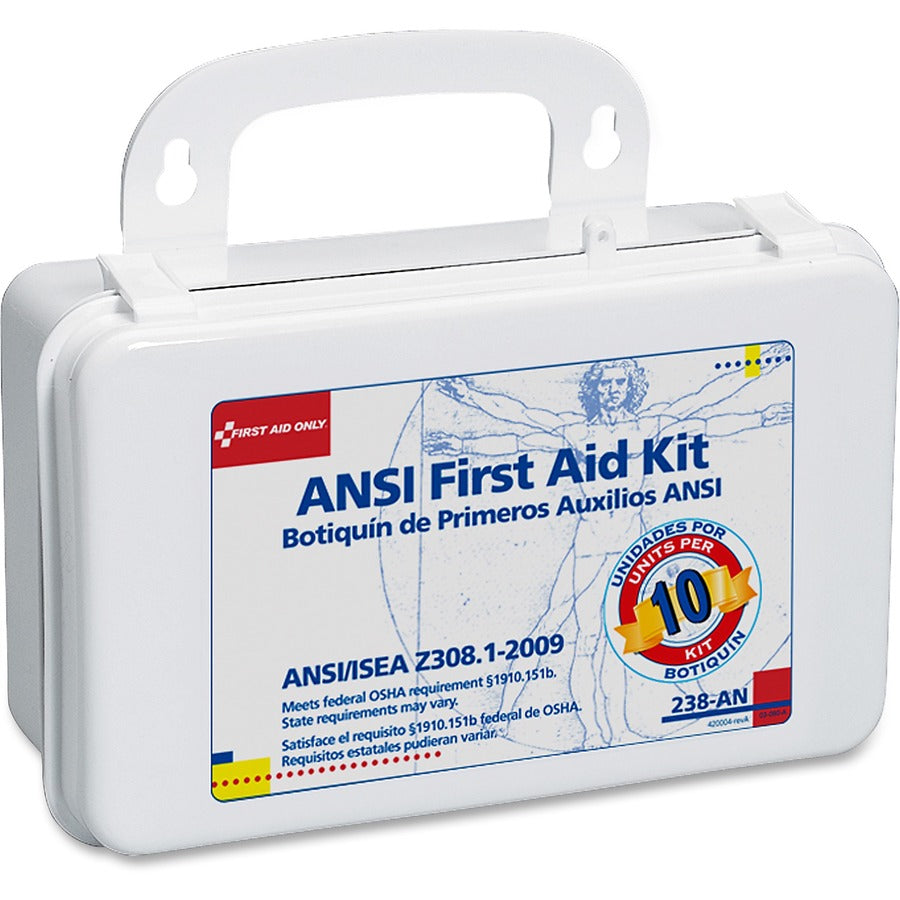 First Aid Only ANSI 10-unit First Aid Kit - 64 x Piece(s) - 4.6" Height x 7.7" Width x 2.4" Depth - Plastic Case - White - 1 Each