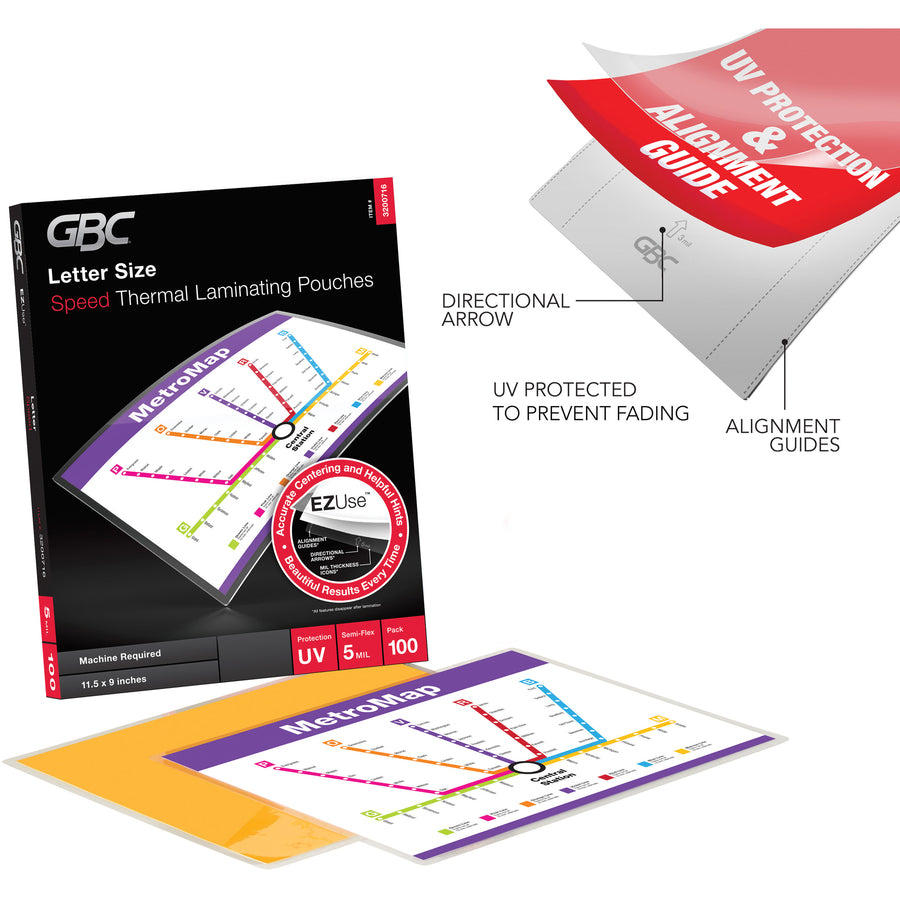 GBC Fusion EZUse Laminating Pouches - Sheet Size Supported: Letter - Laminating Pouch/Sheet Size: 8.50" Width x 11" Length x 5 mil Thickness - Glossy - for Document - UV Resistant, Fade Resistant - Clear - 100 / Box