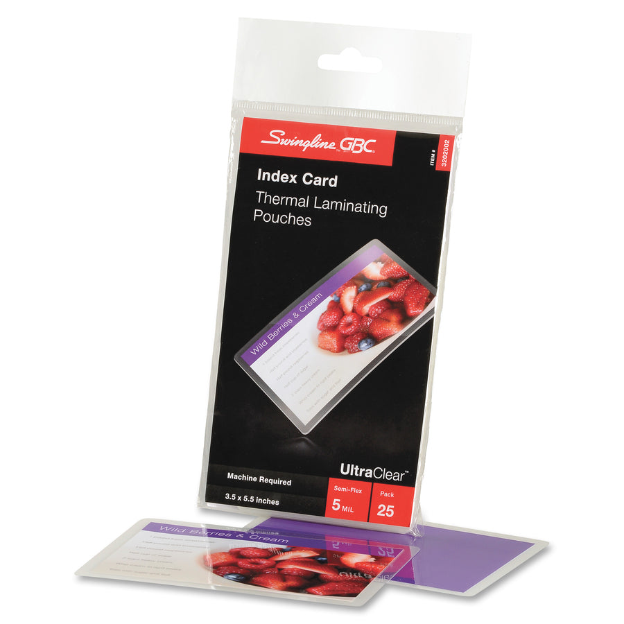 GBC UltraClear Thermal Laminating Pouches - Laminating Pouch/Sheet Size: 3.50" Width x 5.50" Length x 5 mil Thickness - Glossy - for Index Card - Flexible, Wear Resistant, Tear Resistant - Clear - 25 / Pack