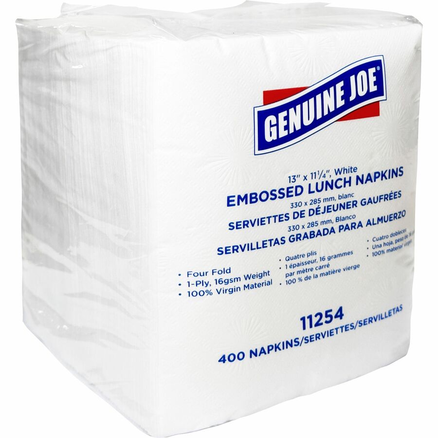 Genuine Joe Lunch Napkins - 1 Ply - Quarter-fold - 13" Width x 11.25" Length - White - 400/Pack - 6 / Carton