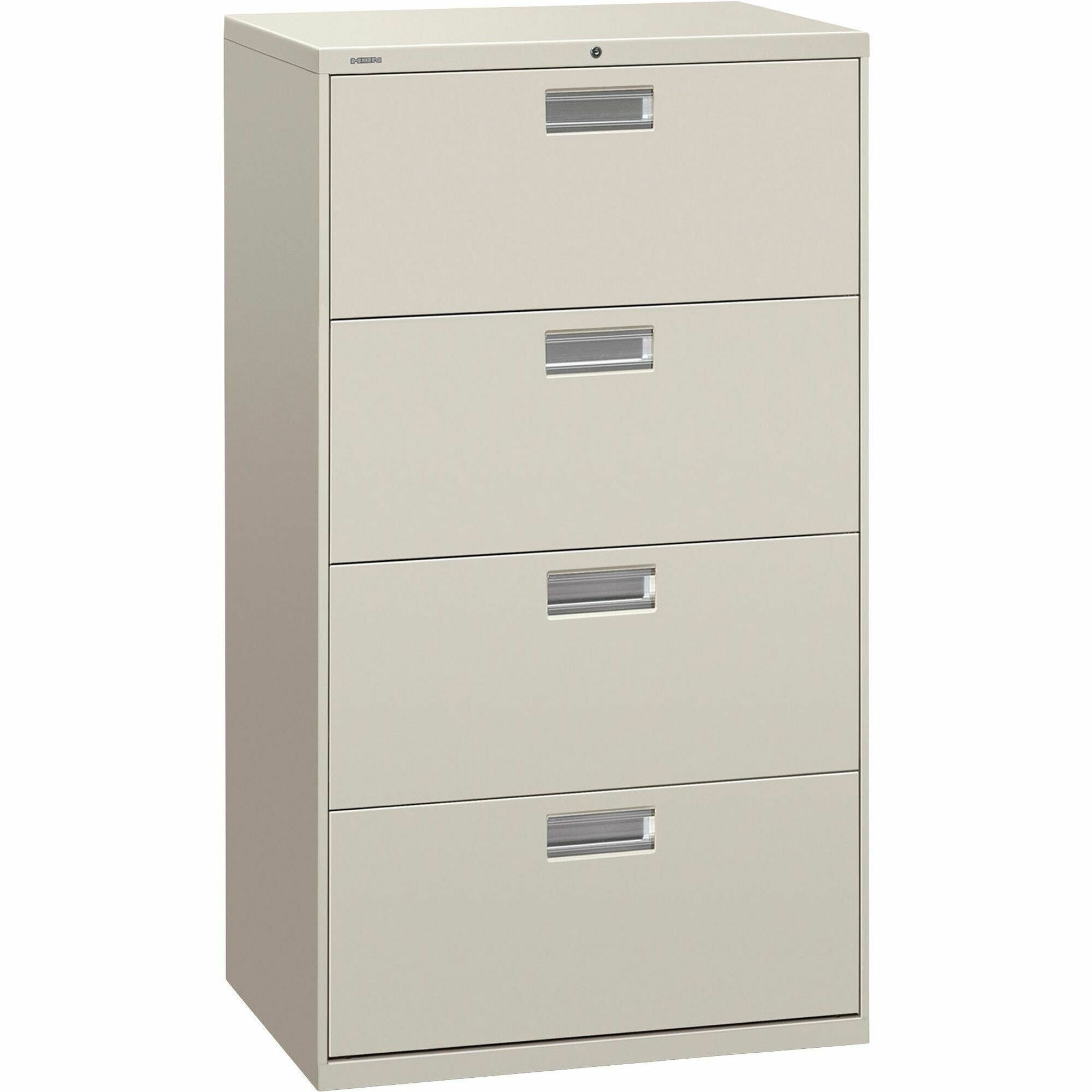 HON Brigade 600 H674 Lateral File - 53.3" Height x 30" Width x 18" Depth - Total Drawer(s): 4 - Finish: Light Gray - 1 Each