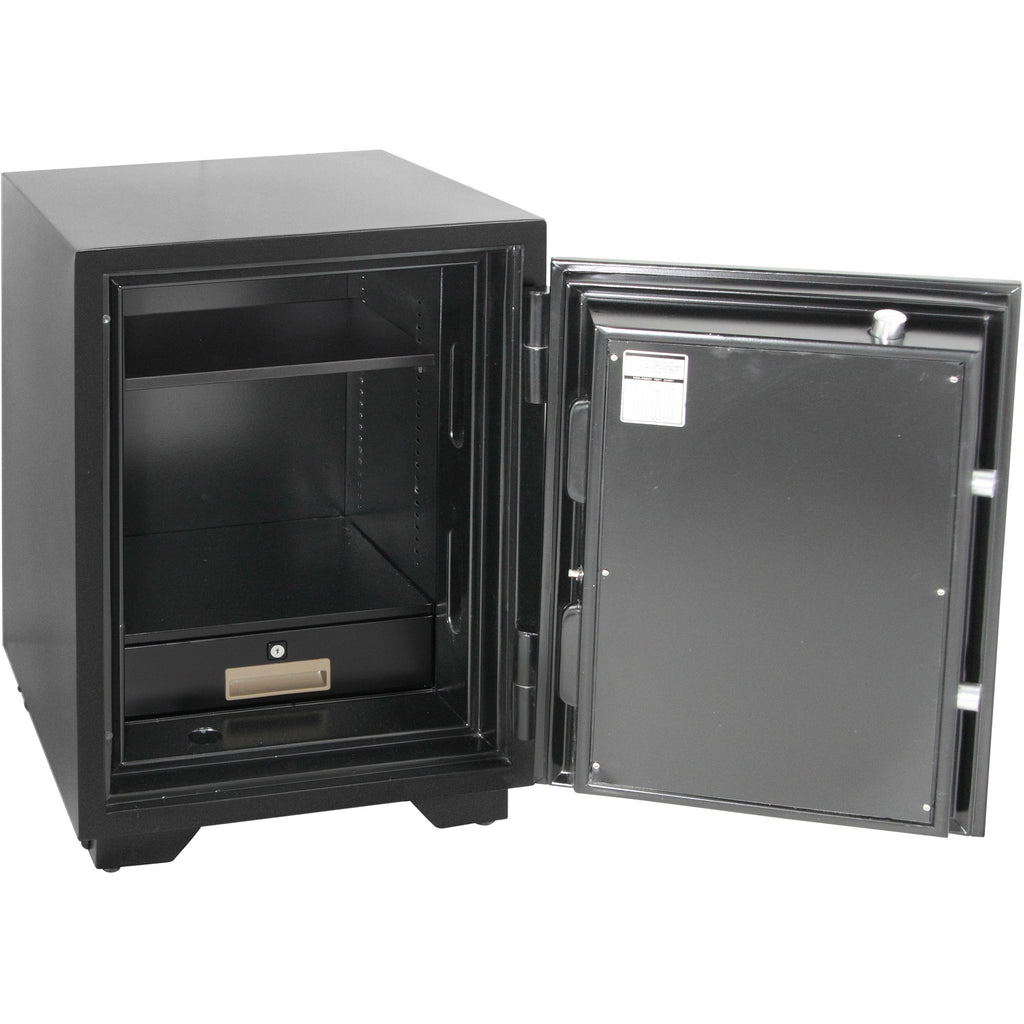 This 2116 Brigade Fire-Resistant Safe features a storage capacity of 2.35 cubic feet. It is fire-resistant and can withstand fire up to 1700 degrees Fahrenheit for 1 hour. Water-resistant door combats leaks, spills and various other forms of water damage. Lock system utilizes a programmable, digital keypad that lets you program your own personal digital passcode with three to eight digits. LED control panel displays the date and time. Intuitive technology permits two separate individuals to access the safe with their own unique passcodes. You can access the user history for reference. Alarm sounds off when the safe is tilted or moved. If the battery fails, the override key can bypass the digital passcode. Safe provides safety and security for your essential documents and most valuable possessions while preparing for events such as a disaster, fire or an invasion of your home or office.