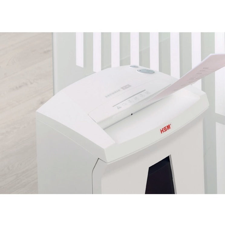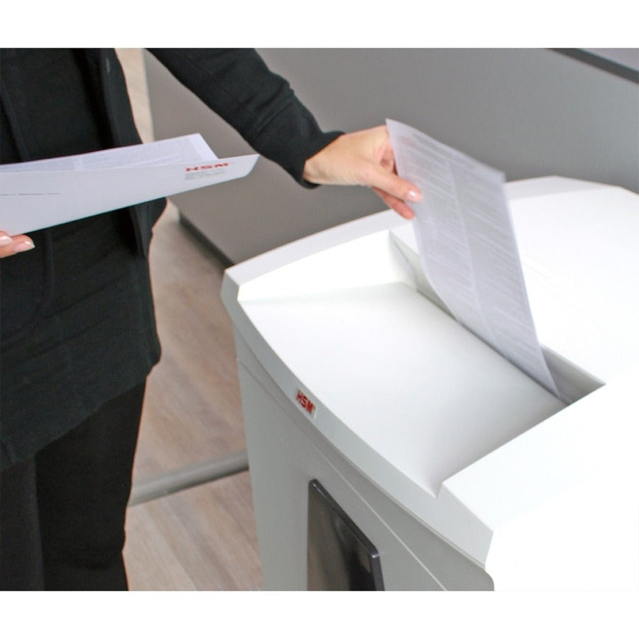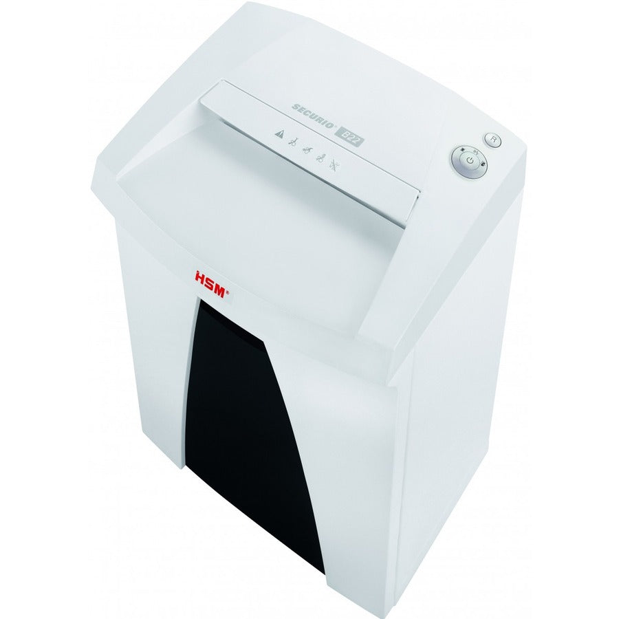 HSM SECURIO B22 - 1/8" x 1 1/8" - Continuous Shredder - Particle Cut - 11 Per Pass - for shredding Paper, Paper Clip, Staples, CD, DVD, Credit Card - 0.125" x 1.125" Shred Size - P-4/T-4/E-3/F-1 - 9.45" Throat - 8.70 gal Wastebin Capacity - White - TAA...