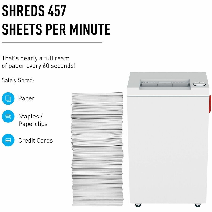 ideal. 2465 Cross-Cut Paper Shredder - Continuous Shredder - Cross Cut - 15 Per Pass - for shredding Paper, Staples, Paper Clip, Credit Card - 1.500" x 0.187" Shred Size - P-4 - 27 ft/min - 9.50" Throat - 9 gal Wastebin Capacity - 559.27 W - TAA Compliant