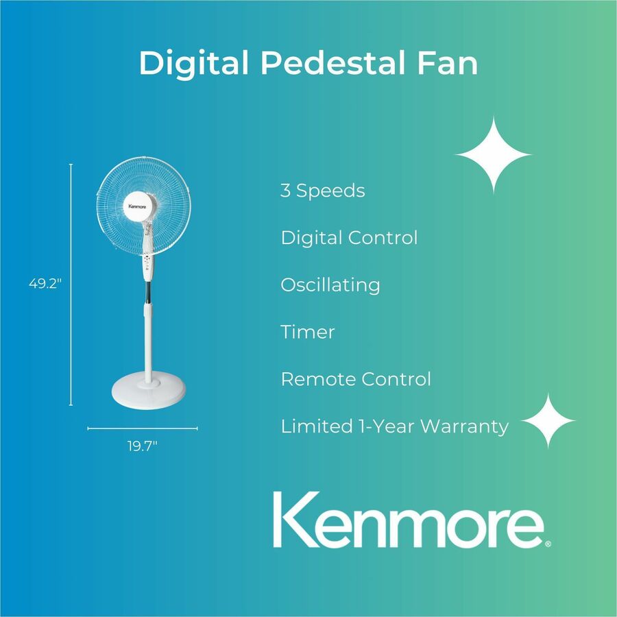 Kenmore 12" Pedestal Fan - 3 Speed - White