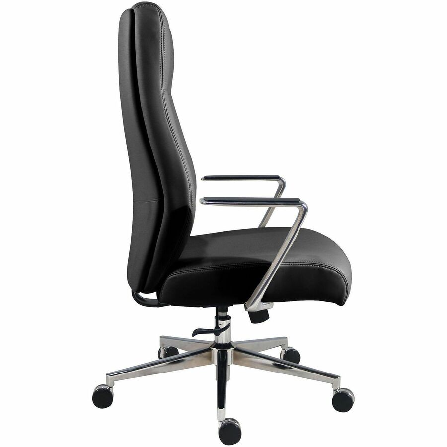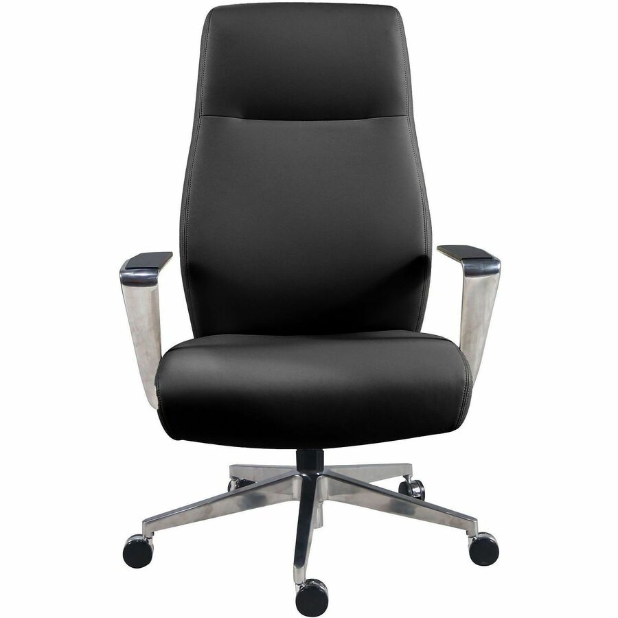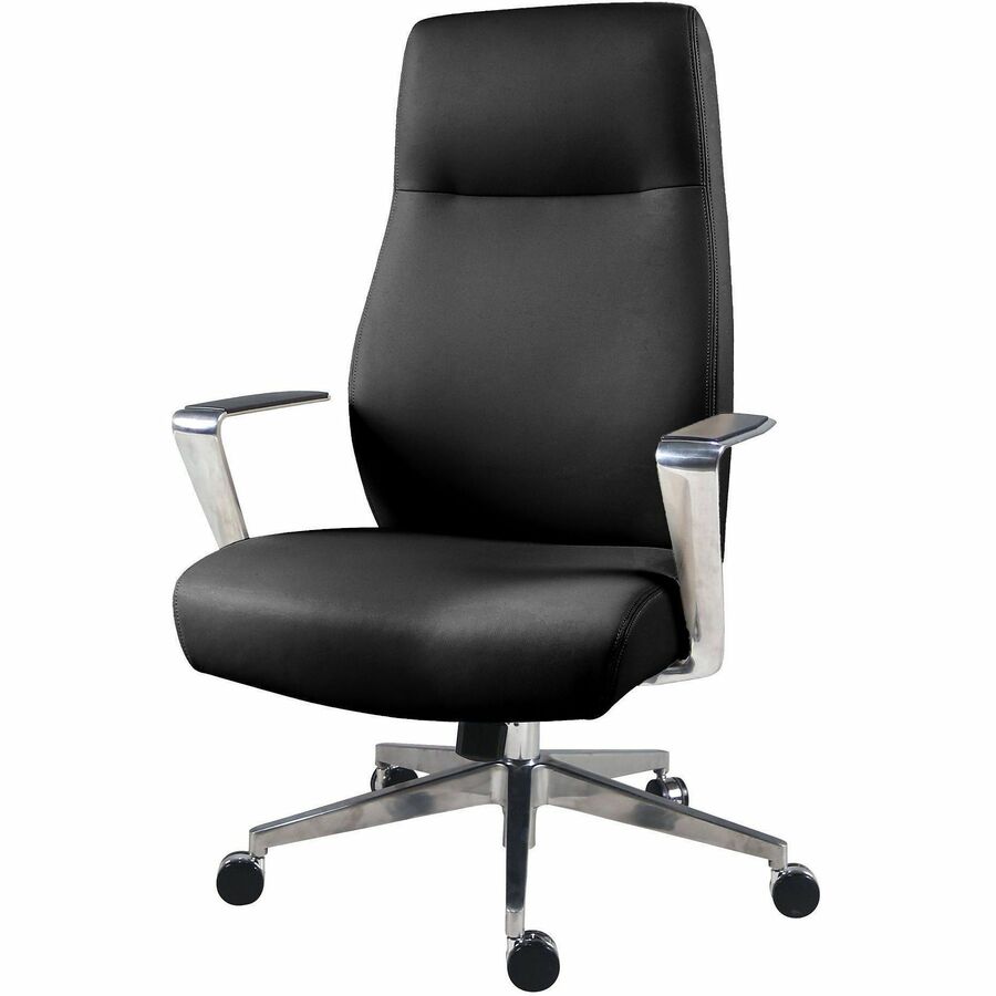 Lorell Fuerte Executive/Conference High-Back Chair with Polished Aluminum Arms - High Back - Black - Poly, Polyurethane - Armrest - 1 Each