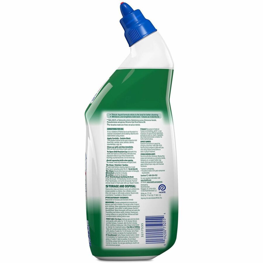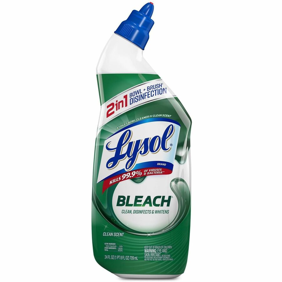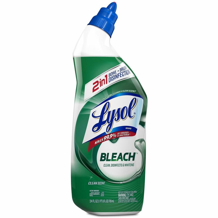 Brighten your facility's toilets with Lysol Toilet Bowl Cleaner with Bleach that cleans, disinfects and whitens. Give cleaning crews a formula that powers through rust, organic stains and limescale without harming plumbing or septic systems. Cleaner kills 99.9 percent of bacteria and viruses, including Salmonella, Staphylococcus aureus and Rotavirus WA, when used as directed on hard, nonporous surfaces. Angle-neck bottle produces effective cleaning action to target and remove tough-to-reach stains. Deliver a positive restroom experience for guests at your facility with a powerful, brightening clean.