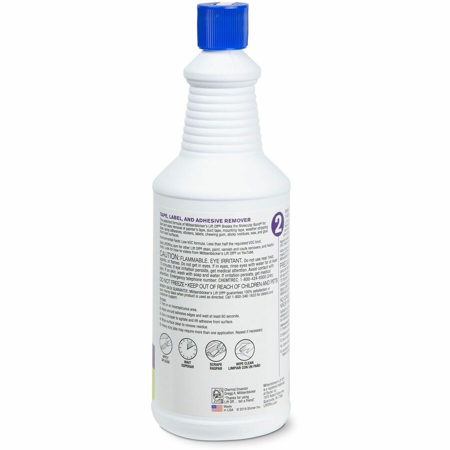 M�tsenb�cker's Lift Off Tape/Label Adhesive Remover - 1 quart - For Tape Adhesive, Label Adhesive, Grease, Oil Gum, Tar, Spray Adhesive, Sticker Adhesive, Chewing Gum, Wax, Glue, Residue Remover - White - 6 / Carton