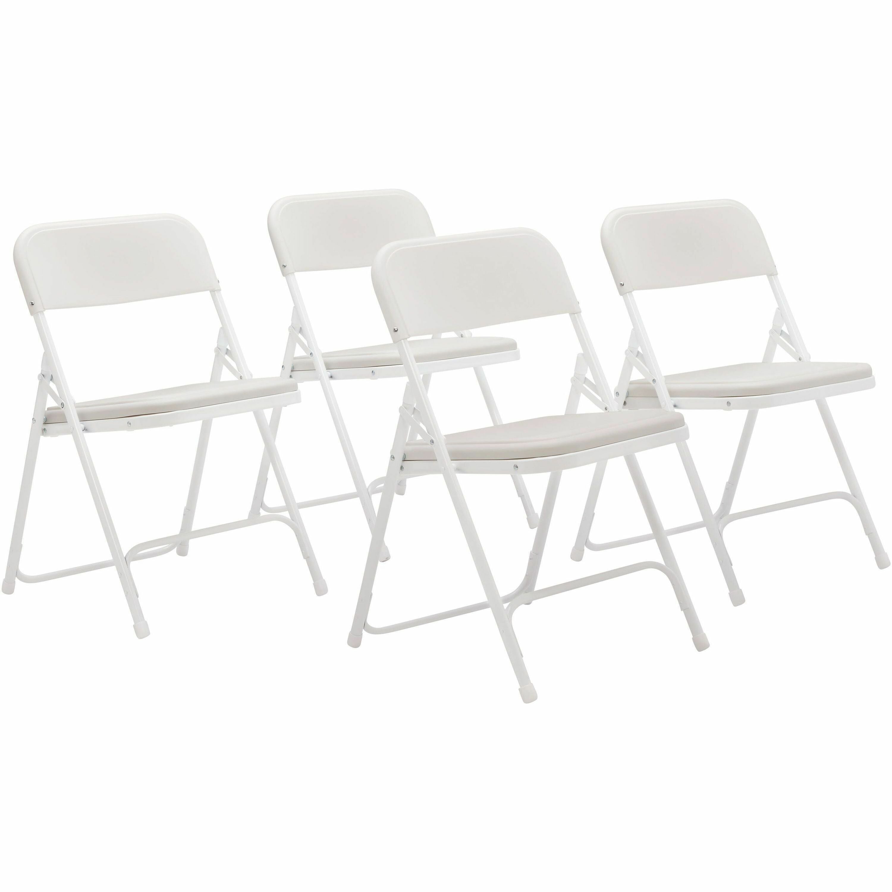 National Public Seating 800 Series Folding Chair - Plastic Seat Material - Plastic Back Material - Steel Frame Material - Four-legged Base - Bright White - Polypropylene - 4 / Carton
