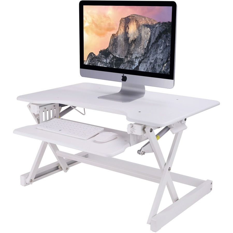 Rocelco EADRW- Sit Stand Desk Riser - 7" Height x 34.50" Width x 23" Depth - Desktop - Black - For Monitor, Notebook, Keyboard, Workstation - Sit-stand, Keyboard Tray, Ergonomic, Sturdy, Handle, Cable Management