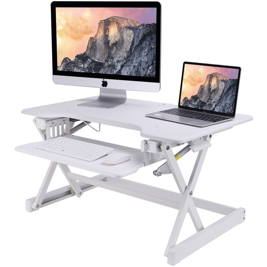 7" Height x 34.50" Width x 23" Depth - Desktop - Black - For Monitor, Notebook, Keyboard, Workstation - Sit-stand, Keyboard Tray, Ergonomic, Sturdy, Handle, Cable Management