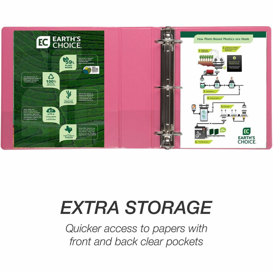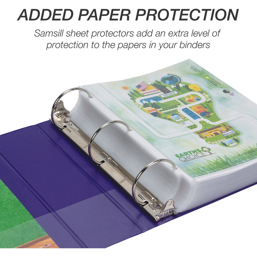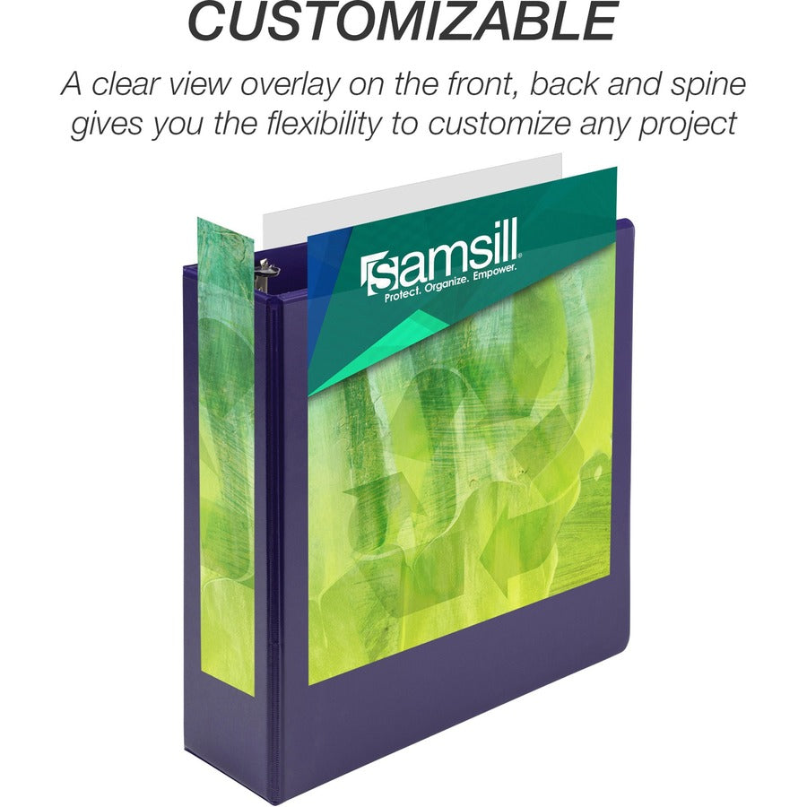 Samsill Earthchoice Durable View Binder - 3" Binder Capacity - Letter - 8 1/2" x 11" Sheet Size - 550 Sheet Capacity - 3 Ring(s) - Fastener(s): Round Ring - Pocket(s): 2, Internal - Chipboard - Assorted - Recycled - Bio-based, Durable, Clear Overlay, F...