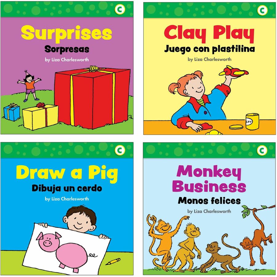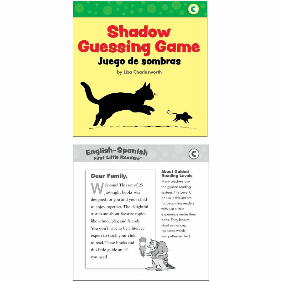 Give English Language Learners (ELL) the support they need in reading with these tempting little books featuring text in English and Spanish. Written to correlate with Guided Reading Level C, these simple, predictable stories feature high-frequency words, rhyming repetition and helpful illustrations on topics students love. They are perfect as a bilingual resource for early learners or introducing English speakers to a new language. Book set includes 25 books that are perfect for small groups. Each book contains eight pages, four-page family guide and storage box.