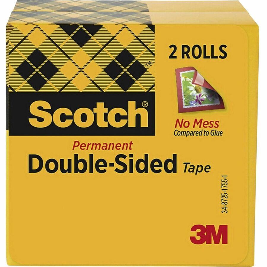 Scotch Permanent Double-Sided Tape - 1/2"W - 25 yd Length x 0.50" Width - 1" Core - Clear - Acrylate - 3 mil - Permanent Adhesive Backing - Long Lasting - For Attaching, Mounting - 1 Pack