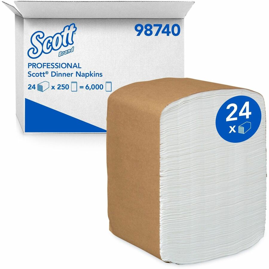 Scott Dinner Paper Napkins - 12" Width x 13" Length - White - 250/Pack - 1 Carton