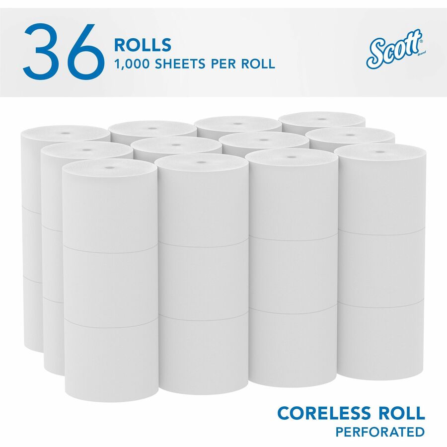Scott Essential Coreless High-Capacity Standard Roll Toilet Paper - 2 Ply - 4" Width x 3.70" Length - 1000 Sheets/Roll - White - 1 Carton