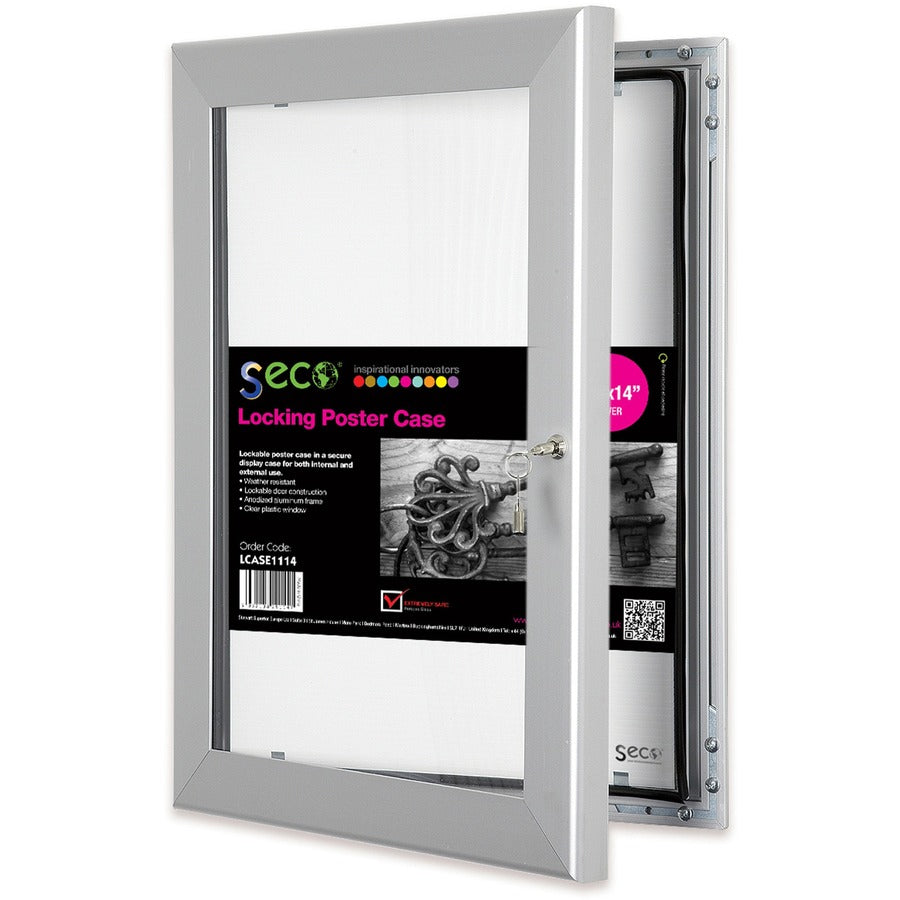 Seco Locking Poster Case - 11" x 14" Frame Size - Rectangle - Portrait, Landscape - Anodized - Weather Proof, Shatter Proof, Lockable, Rust Proof, Water Proof - Aluminum, Plastic, Polycarbonate - Silver - 1 Each