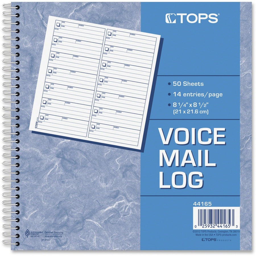 TOPS Voice Message Log Book - 50 Sheet(s) - 24 lb - Spiral Bound - 8.50" x 8.25" Sheet Size - White - Blue Print Color - 1 Each
