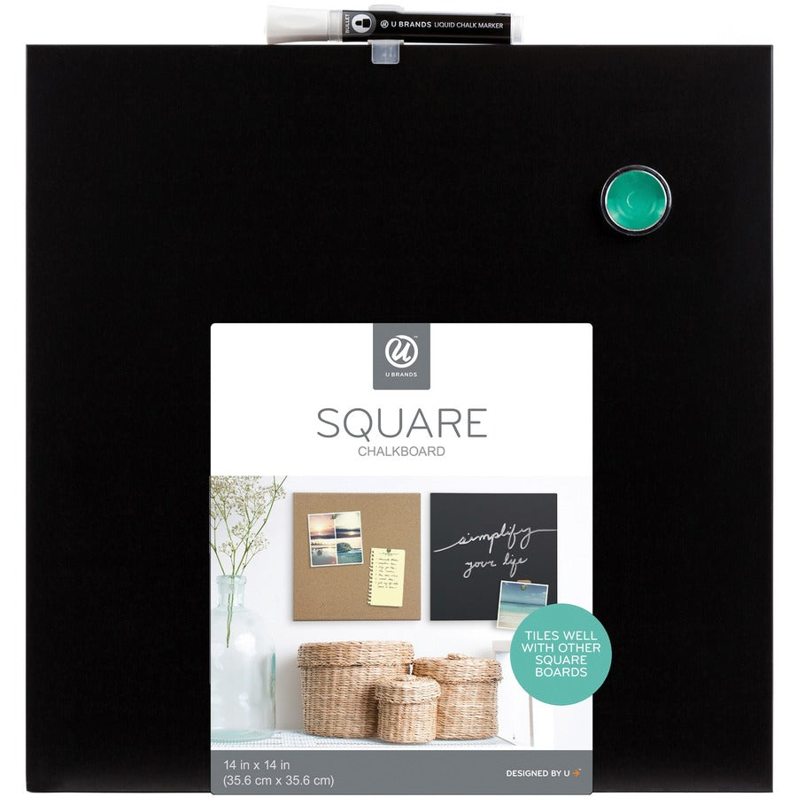 U Brands Frameless Magnetic Chalkboard - 14" (1.2 ft) Width x 14" (1.2 ft) Height - Black Painted Steel Surface - Square - Horizontal - Magnetic - 1 Each