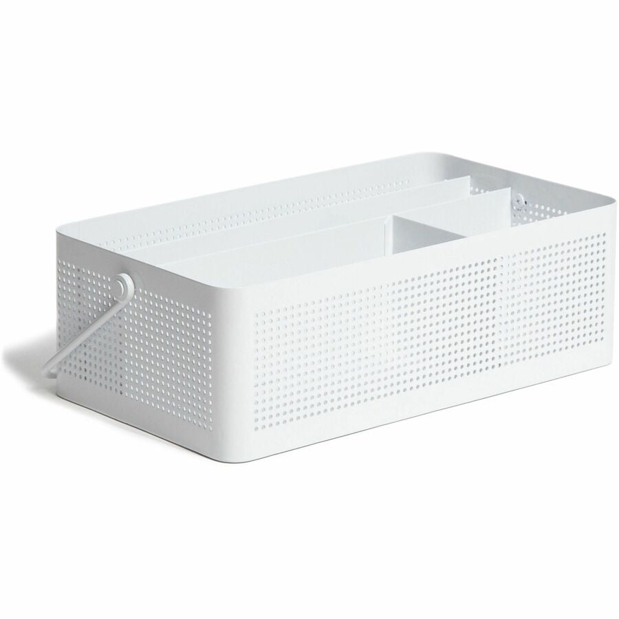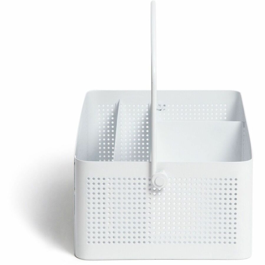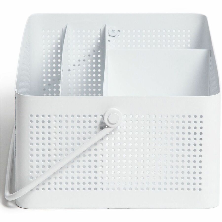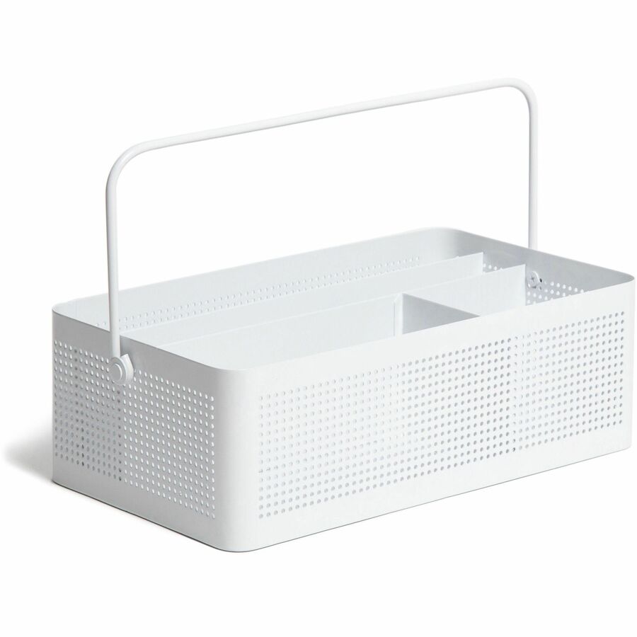 U Brands Modern Perforated Metal Desk Caddy - 4 Compartment(s) - 3.90" Height x 12.30" Width x 6.90" Depth - Durable, Portable, Handle - White - Metal - 1 Each