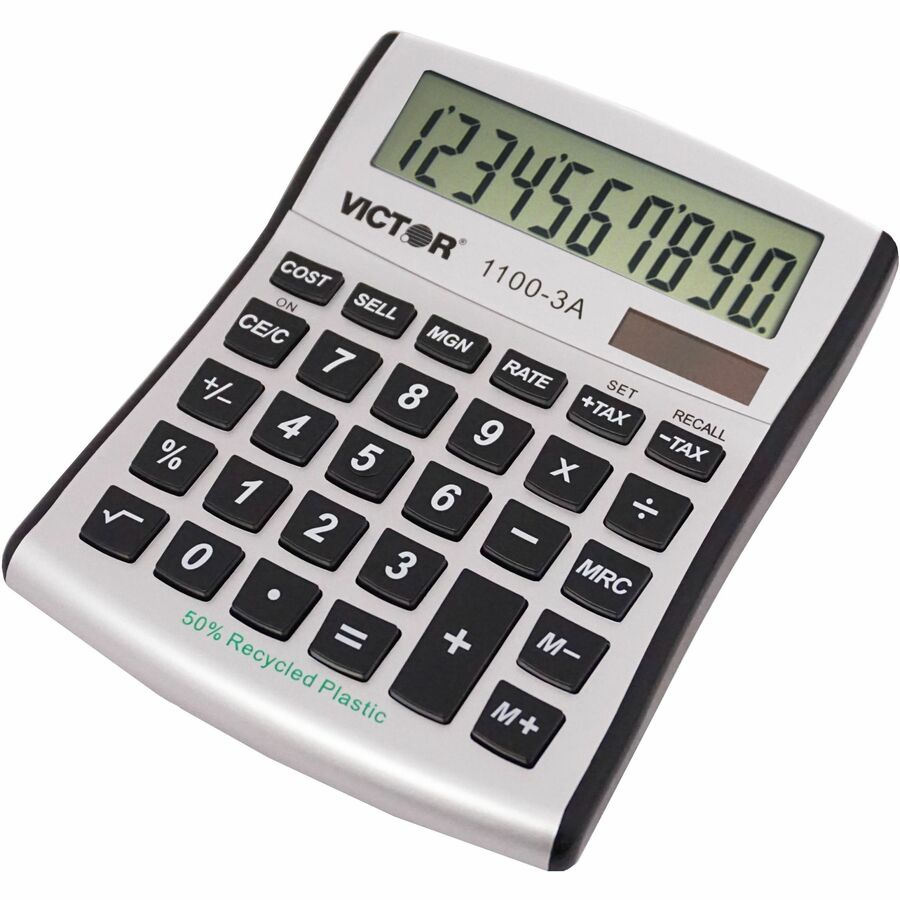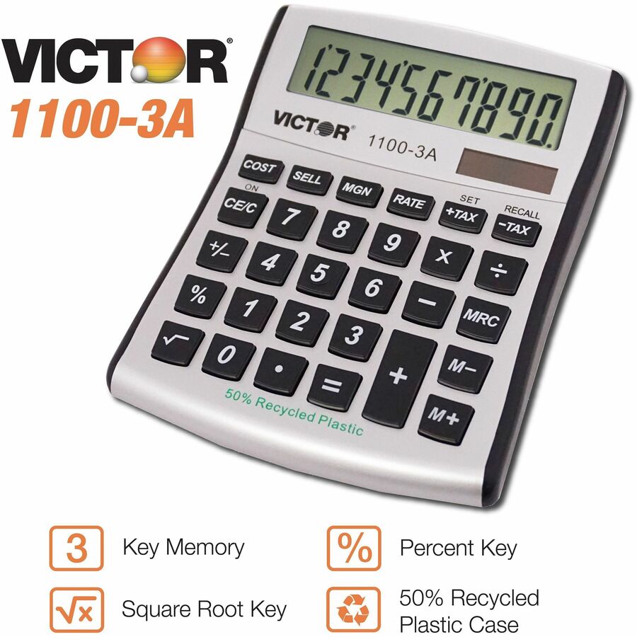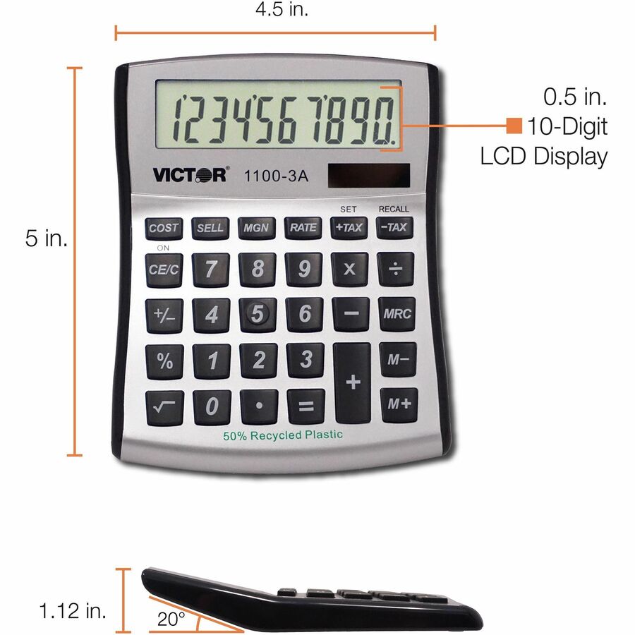 Victor 11003A Mini Desktop Calculator - Large Display, Angled Display, Dual Power, Independent Memory, Environmentally Friendly, Battery Backup - Battery/Solar Powered - Battery Included - 1.1" Height x 4.5" Width x 5" Depth x 5" Length - White, Blue, ...
